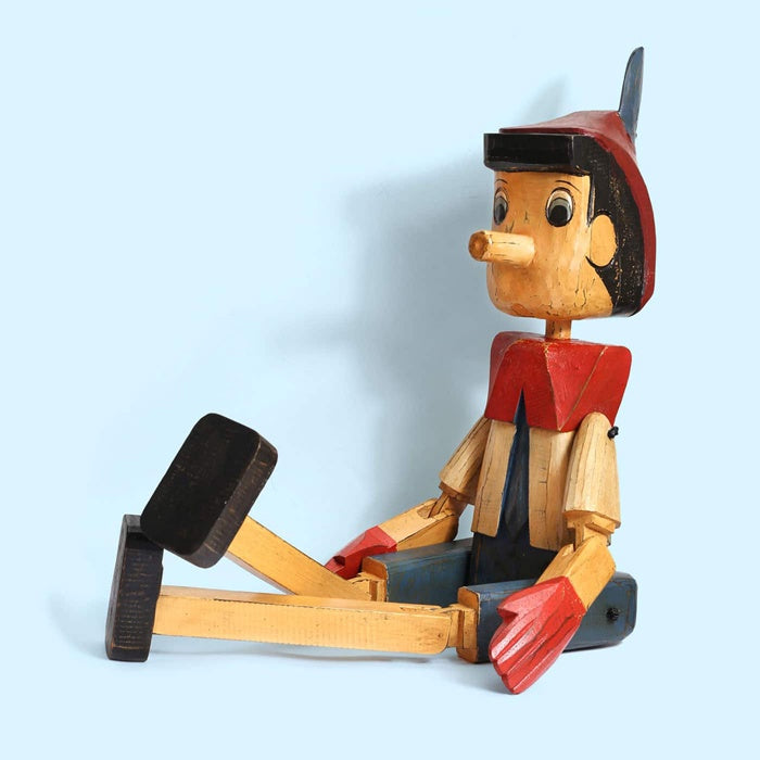 Embracing a classic and timeless aesthetic, our Pinocchio puppet captures the essence of antique-style decor. The carefully aged finish enhances its vintage appeal, evoking a sense of nostalgia and adding character to your home or office.