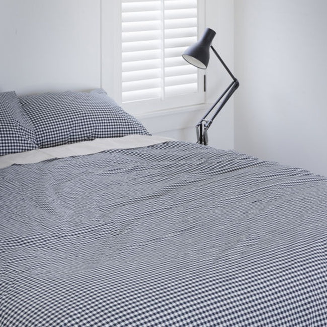 Citta Gingham Organic Cotton Duvet Cover Navy | Queen.