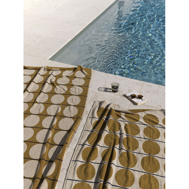 Relax by the water’s edge with the Abacus beach towel. The geometric design draws inspiration from the traditional abacus counting frame. Its clean lines and shapes are complemented by a muted three-tone palette, evoking a refined yet retro aesthetic.