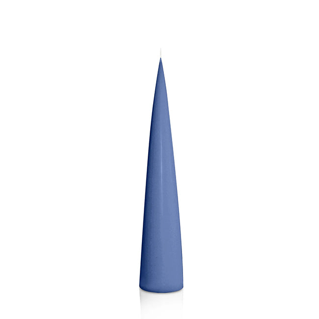 The hand poured unscented Hueseeka Cone Candle has a diameter of 4.4 cm and a height of 25 cm and is made from vegetable stearin using natural dyes and a braided cotton, lead free wick.