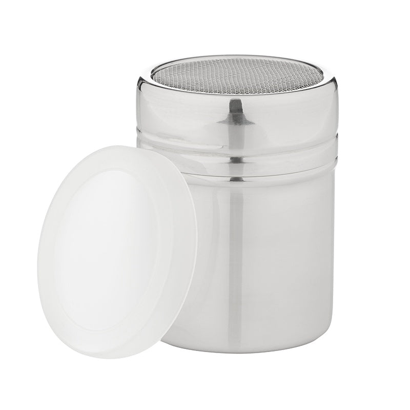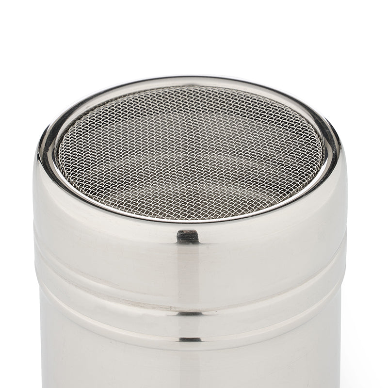 This stylish stainless steel shaker features a mesh top for a fine powder and even distribution when sprinkled over your cappuccino or hot chocolate.