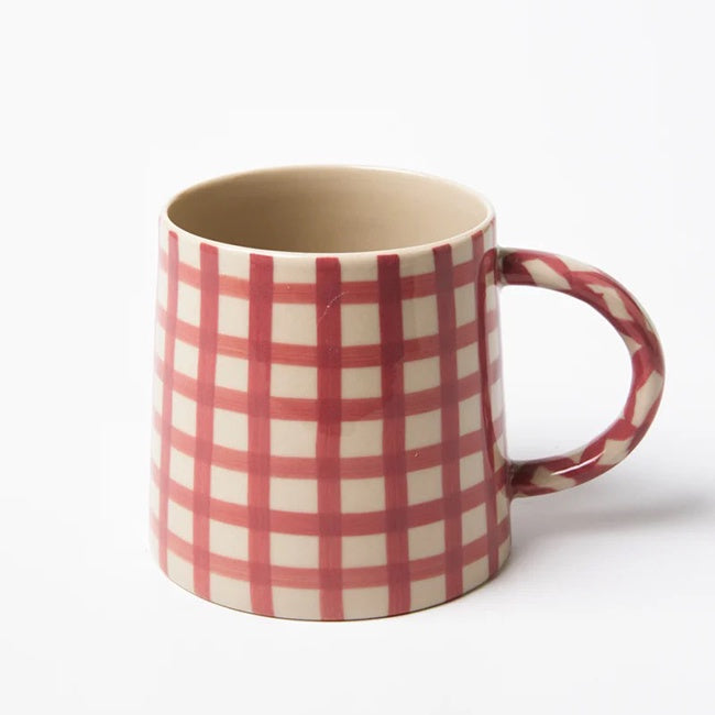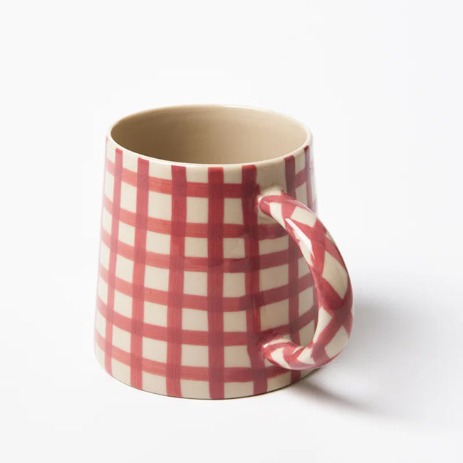 Brighten your mornings with the Larder Check Mug in pink. Hand-painted with a playful gingham check, it brings modern country charm to every sip. Generously sized with a sturdy handle, this mug is made for cosy cuppas and daily rituals that deserve a pop of colour.Elevate your sipping experience with Larder Mugs - a feast for your hands!
