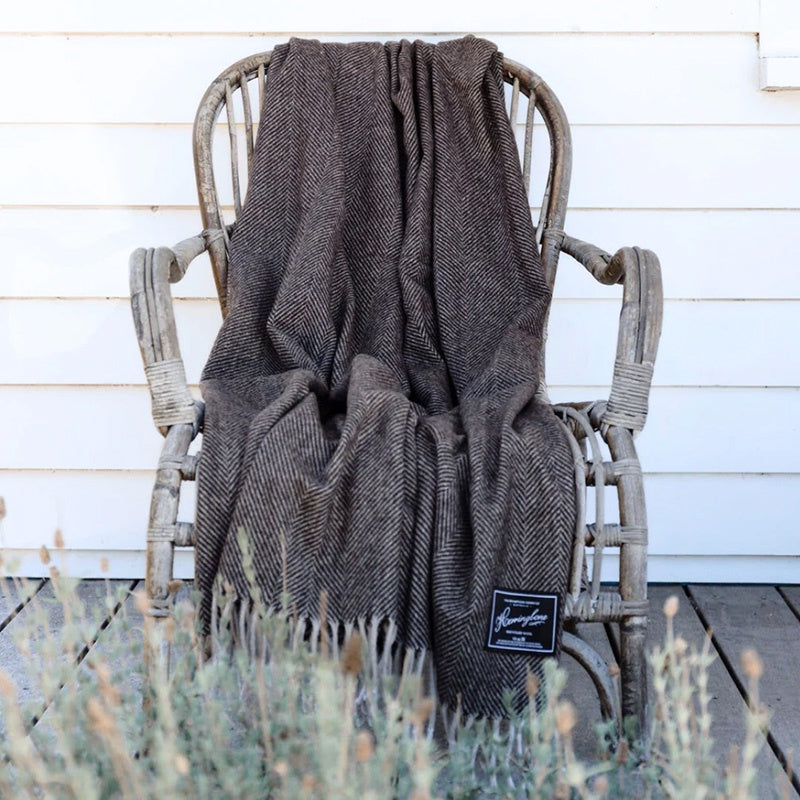 Recycled Wool Herringbone Collection Blanket in Treacle by The Grampians Goods Co.