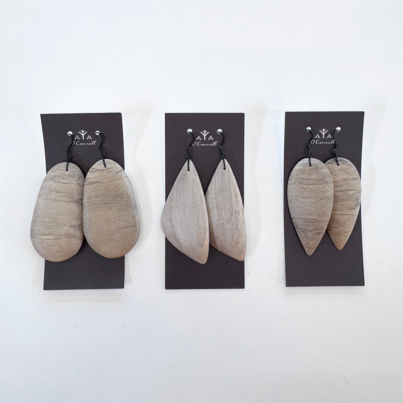 Aya O'Connell Handcrafted Wood Drop Earrings.