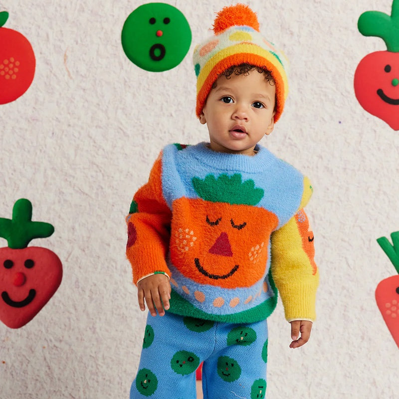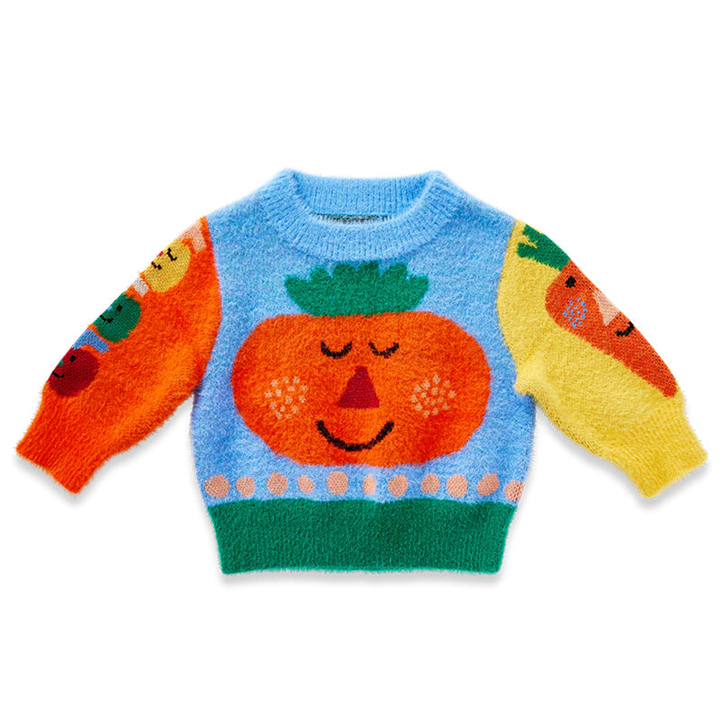 Warm as a hug! This fluffy knit jumper will leave your child feeling snug as a bug this winter. Features a crew neckline, subtle fluffy finish and picture knit design from our Pocket Patch collection on both sides.