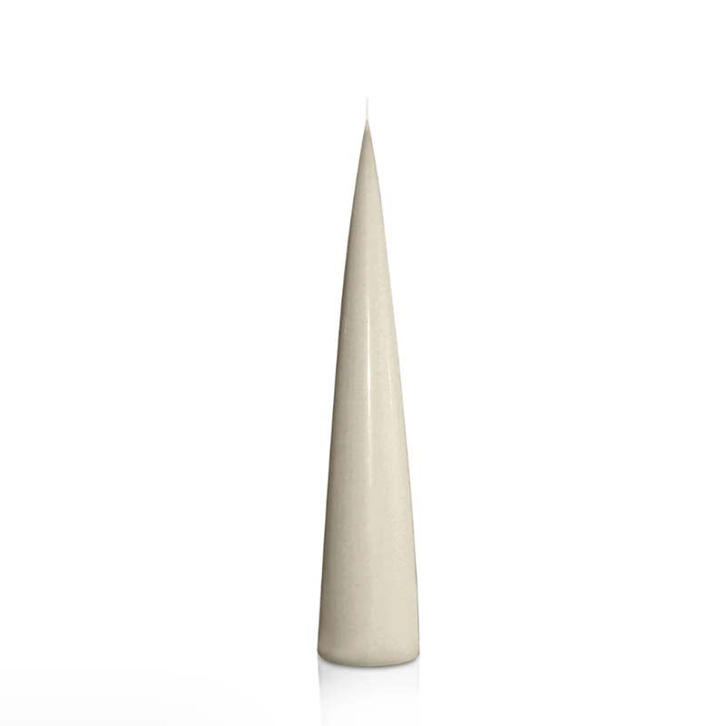 The hand poured unscented Hueseeka Cone Candle has a diameter of 4.4 cm and a height of 25 cm and is made from vegetable stearin using natural dyes and a braided cotton, lead free wick.