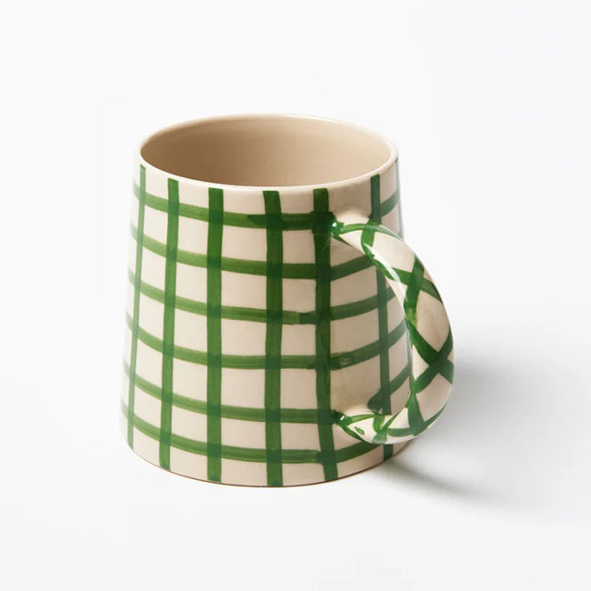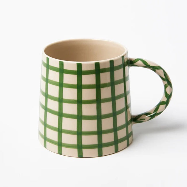 Brighten your mornings with the Larder Check Mug in green. Hand-painted with a playful gingham check, it brings modern country charm to every sip. Generously sized with a sturdy handle, this mug is made for cosy cuppas and daily rituals that deserve a pop of colour. Elevate your sipping experience with Larder Mugs - a feast for your hands!