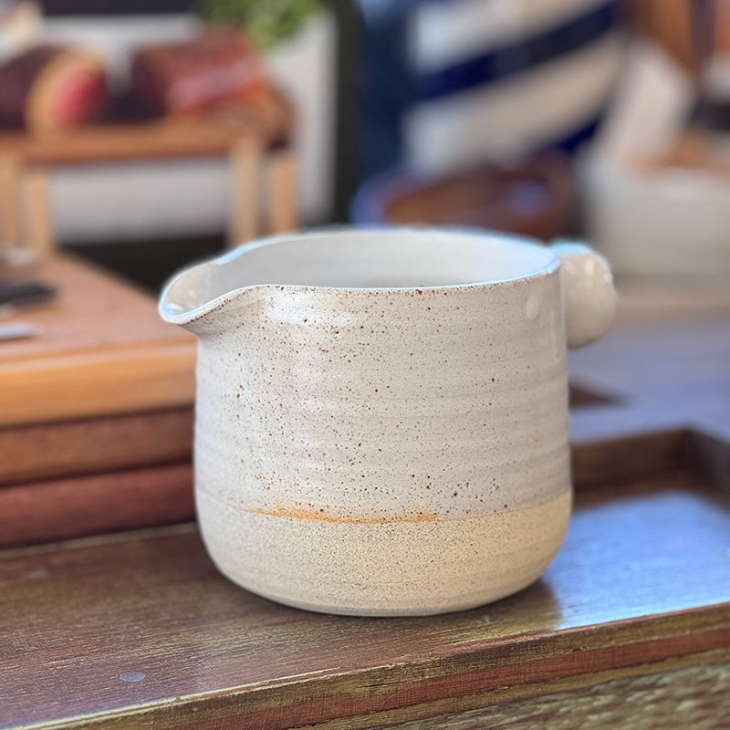 Shelley Panton Hand-Thrown Pottery Pourer w Knob - White Speckle.